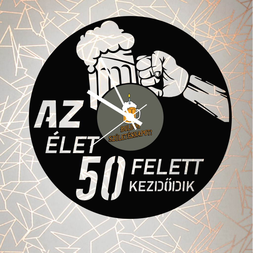 A(z) Boldog Születésnapot-Az Élet 50 után kezdődik sörös Egyedi bakelit óra egy különleges bakelit falióra, amely karakteres megjelenésével azonnal a szoba fókuszpontjává válik. Ideális választás rajongóknak és designkedvelőknek egyaránt.