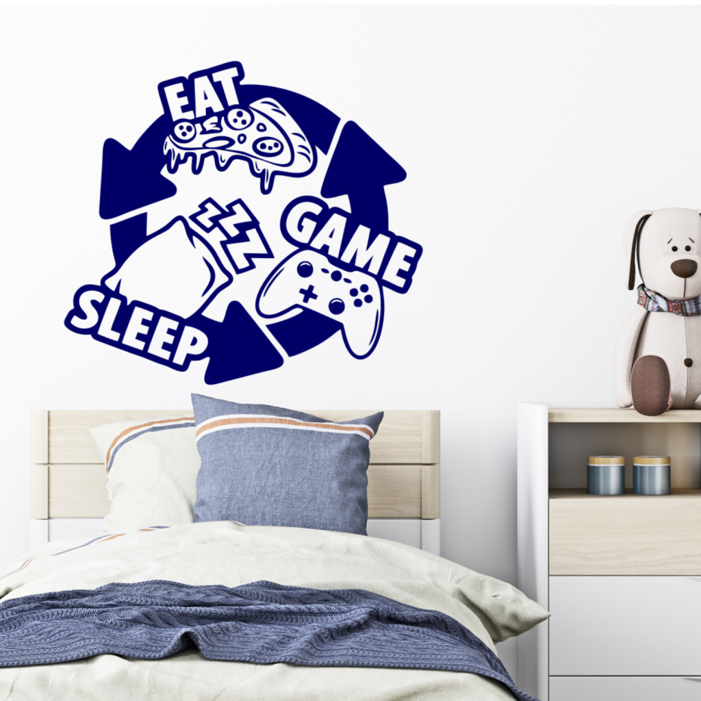 A(z) Eat Sleep Game falmatrica egy gamer falmatrica, amely karakteres, modern megjelenést ad a játékszobának vagy a dolgozósaroknak. Ideális választás konzolos és PC-s játékosoknak, stream háttérnek is kiváló.