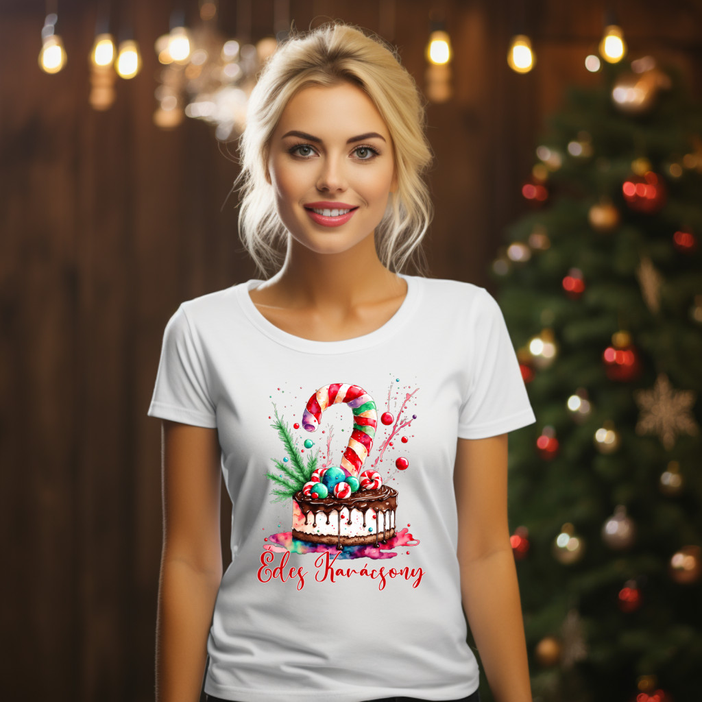 A(z) Édes Karácsony süteményes női póló egy különleges karácsonyi póló, amely meghitt, vidám és ünnepi hangulatot hoz a mindennapokba. Tökéletes választás családi összejövetelekre, munkahelyi karácsonyi bulikra vagy ajándéknak is.