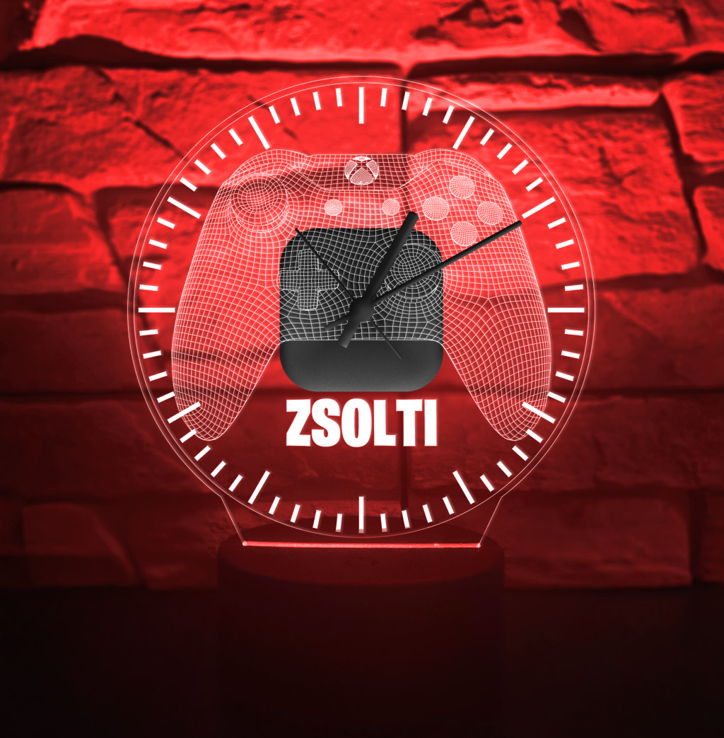 A(z) Gamer Controllel 3D hatású órás Led lámpa egy különleges 3D LED lámpa, amely nemcsak hangulatos fényforrás, hanem egyben praktikus óra is. A csendes járású óraszerkezetnek köszönhetően zavaró kattogás nélkül mutatja az időt.