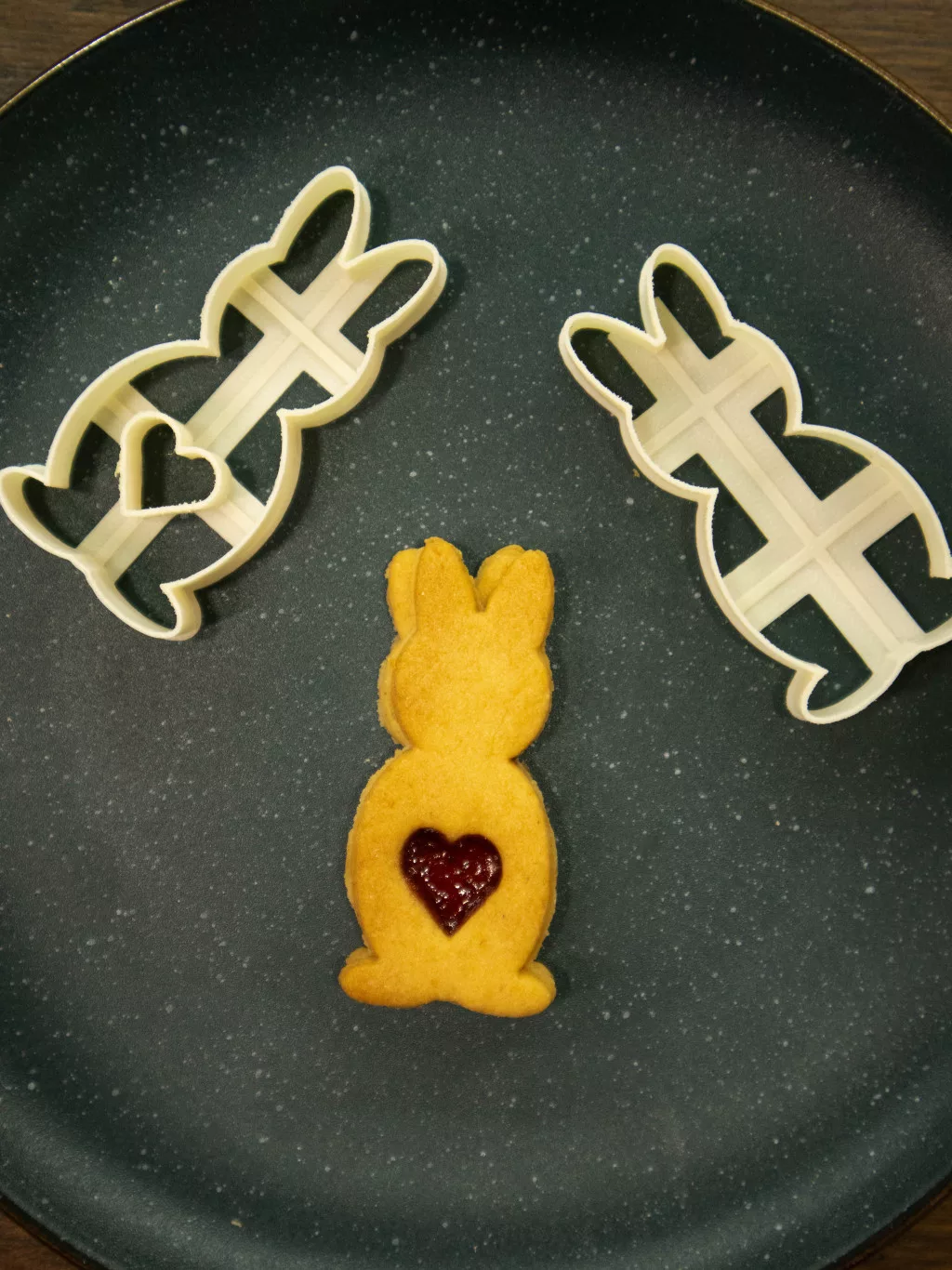 Ez a forma nemcsak Húsvétra, hanem Anyák napjára vagy Valentin-napra is kedves választás lehet. A nyuszi közepén lévő szívforma piros (eper, málna, meggy) lekvárral töltve gyönyörűen érvényesül a sárgás tésztán. Egy tálcányi ilyen "szerelmes nyuszi" garantáltan melegséget visz az ünnepi asztalra.