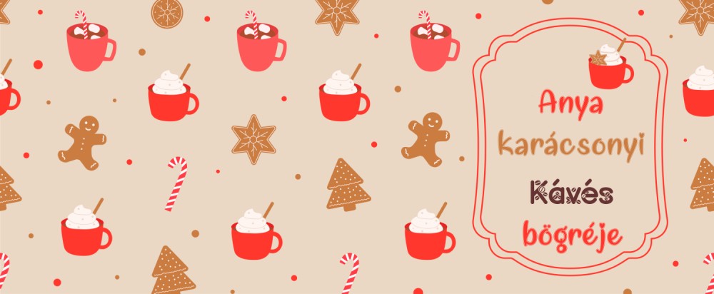 A bögre vidám karácsonyi mintái – mézeskalács, fűszerek és ünnepi bögrék – igazán különleges hangulatot teremtenek.