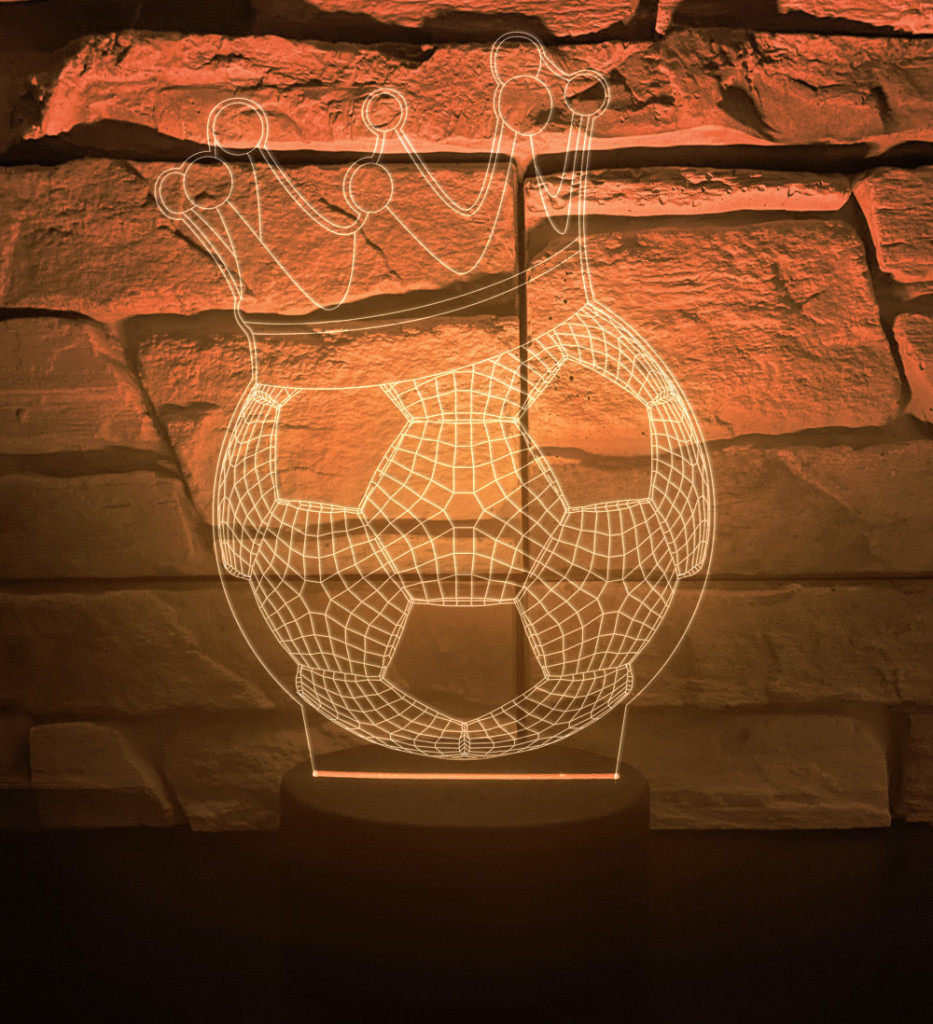 A(z) Koronás Focilabda 3D hatású led lámpa egy sport- és hobbi témájú 3D LED lámpa, amely tökéletes választás minden aktív életmódot kedvelőnek. Különleges fényhatásaival nappal dekorációként, este pedig hangulatvilágításként szolgál.