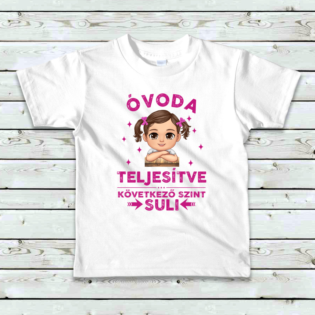 Óvoda teljesítve baba póló – Egyedi karakterrel, névvel kislánynak
