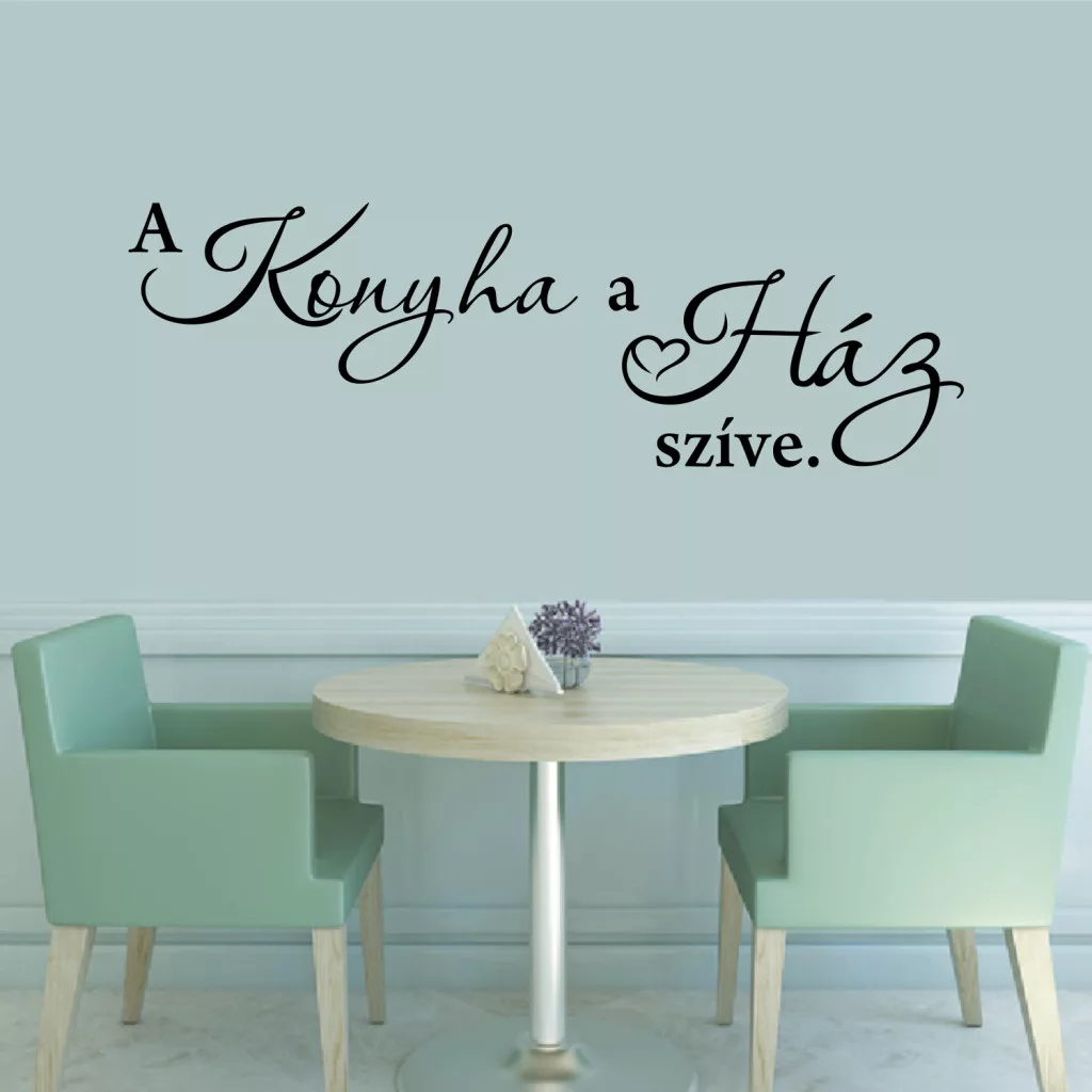 A(z) A konyha a ház szíve – Idézet falmatrica egy konyhai falmatrica, amely friss, otthonos hangulatot teremt és stílusosan kiegészíti a konyhai teret.