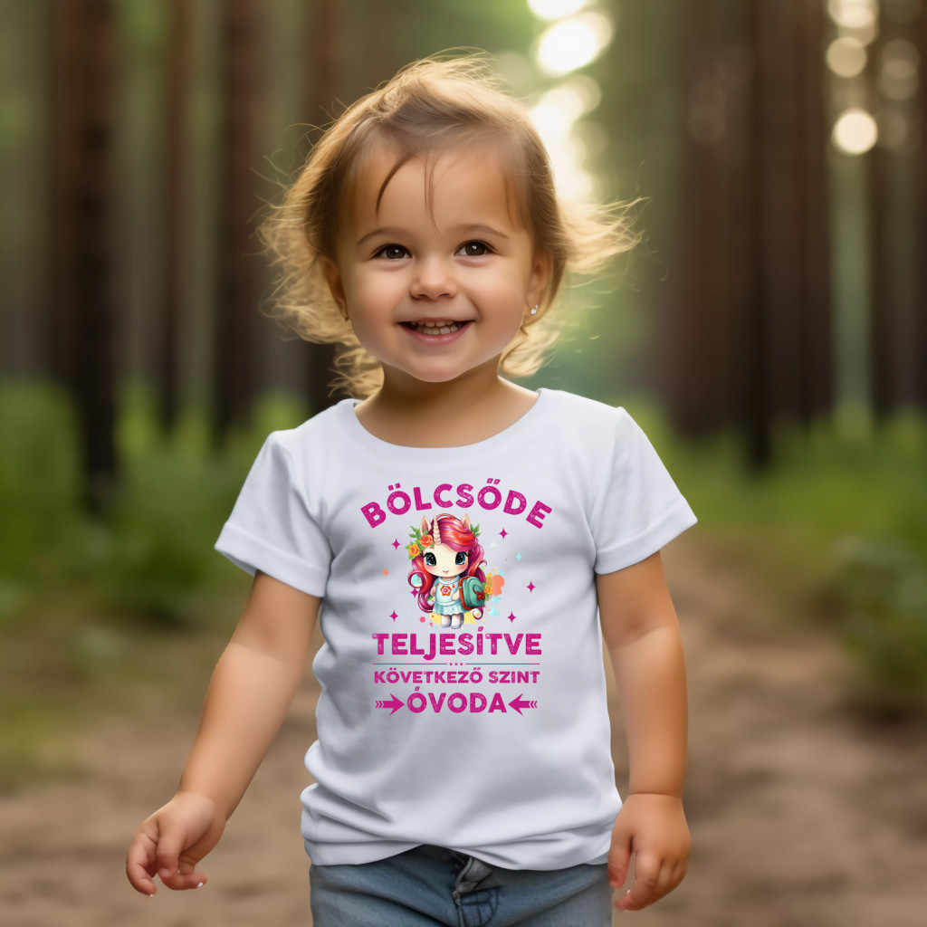 Bölcsőde Teljesítve – Egyedi Unikornisos Lányka Póló