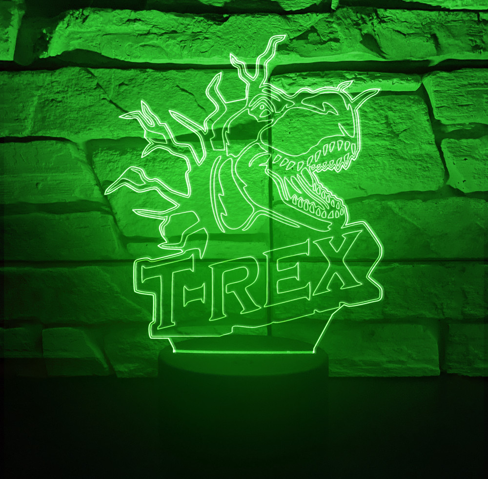 Egyedi Dinos 7 színű 3D LED lámpa – állatos 3D LED lámpa. Látványos fénydekoráció gyerekszobába, nappaliba vagy ajándékba; személyre szabható névvel és felirattal.