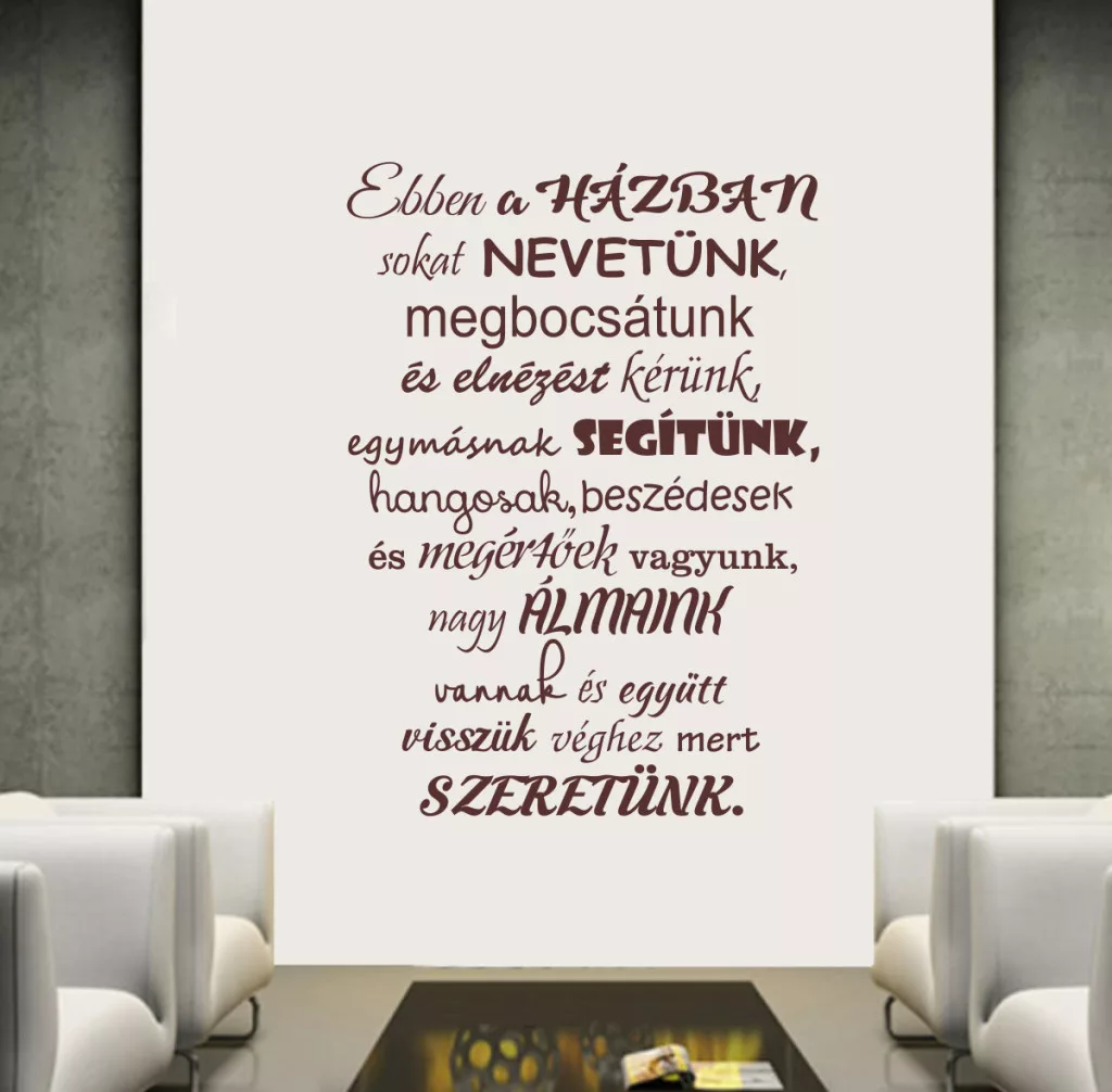 A falmatrica kérhető bármilyen szöveggel: motivációs idézettel, kedvenc verssorral, bibliai idézettel vagy akár teljesen egyedi üzenettel is. Így otthonod falai valóban a saját stílusodat tükrözik.