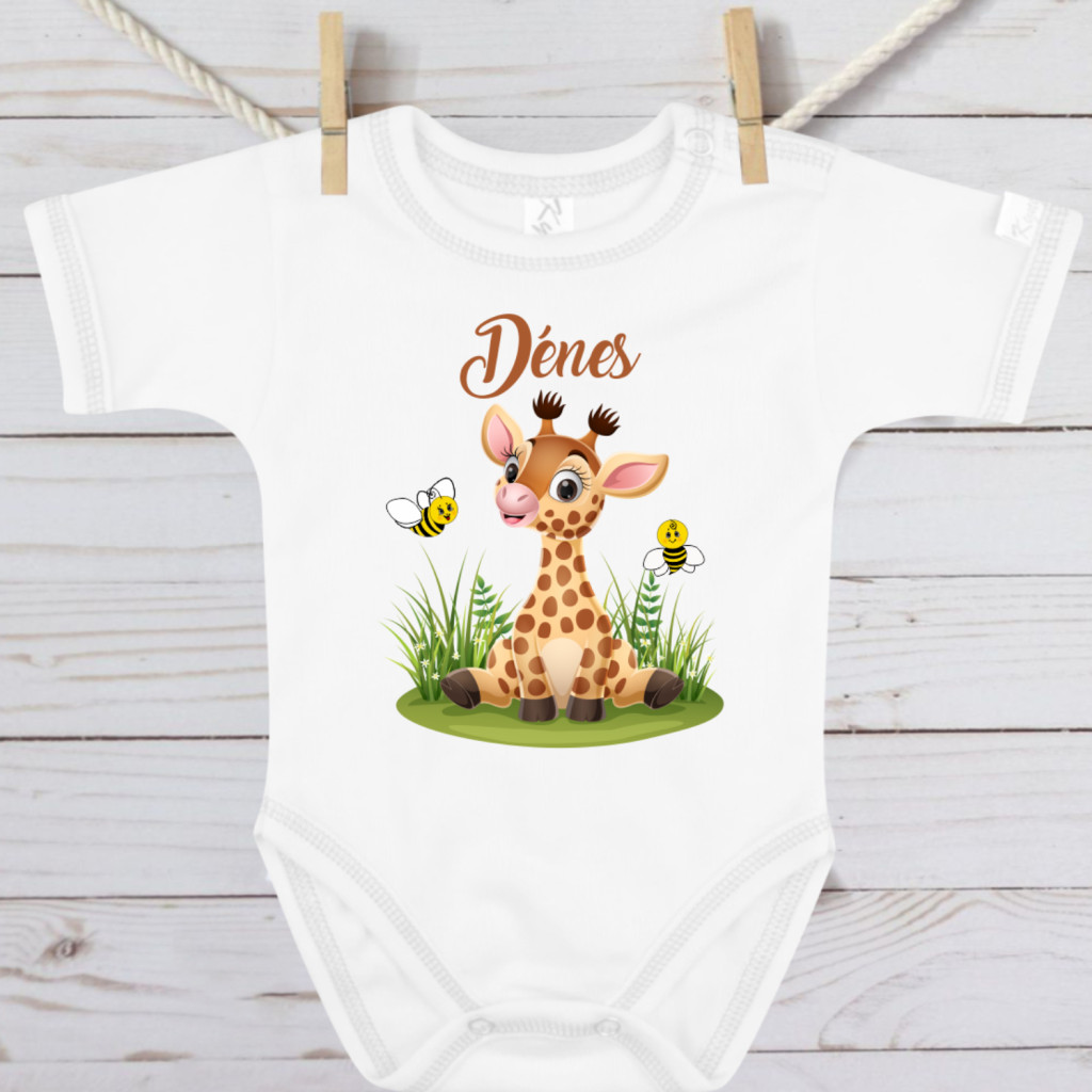 Aranyos zsiráfos baba body – névre szóló egyedi ajándék