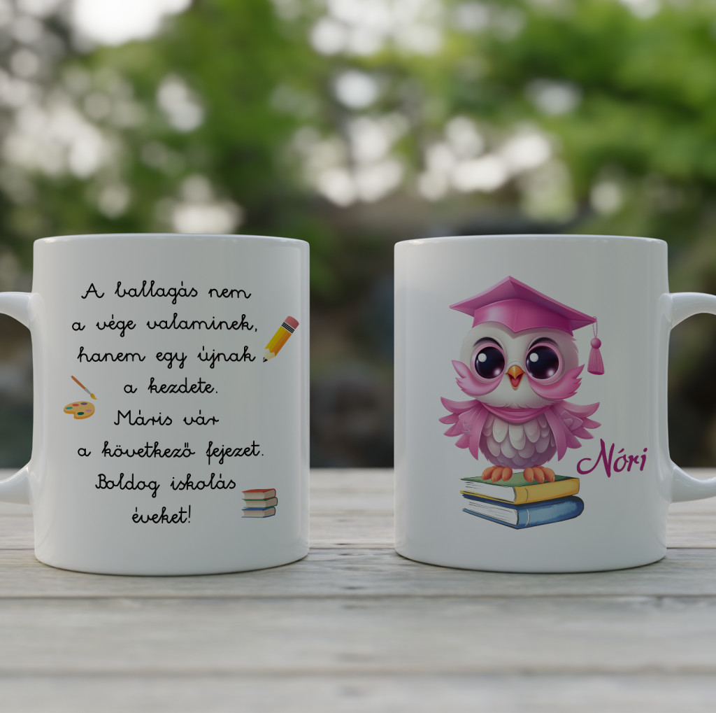 Baglyos ballagási bögre kislányoknak – Egyedi ajándék a legkisebbek ballagására