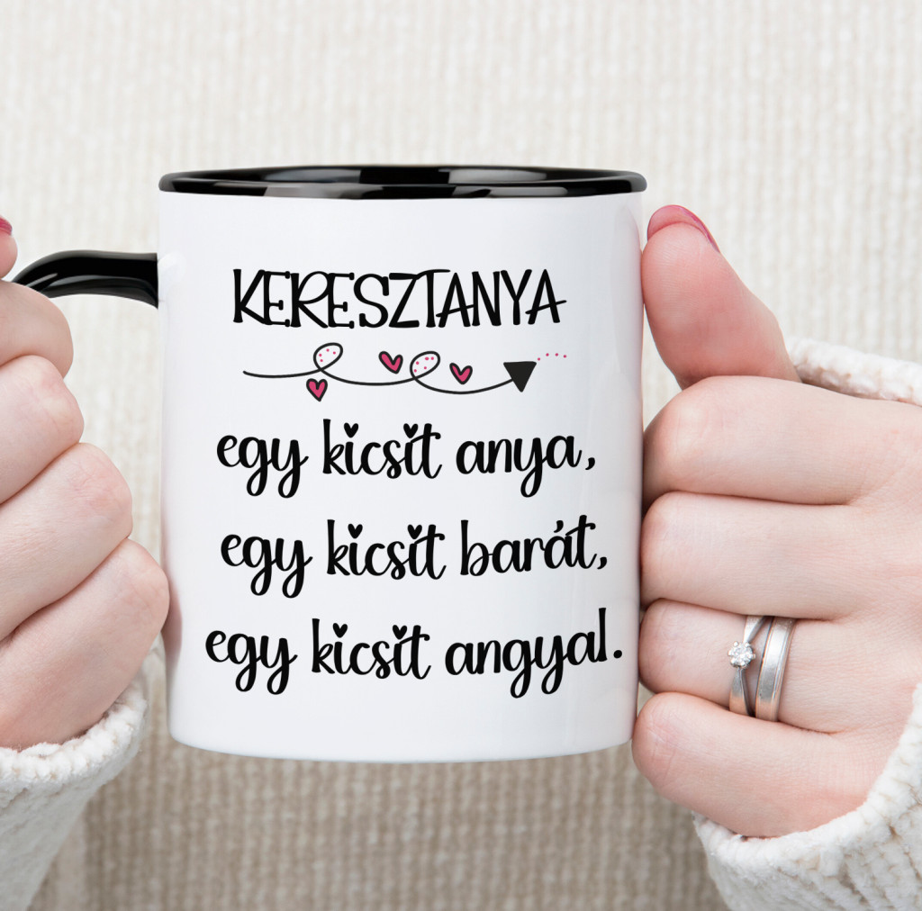 Ez a bögre tökéletes ajándék keresztanyukádnak, hiszen a rajta lévő felirat – „egy kicsit anya, egy kicsit barát, egy kicsit angyal” – igazán kifejezi a különleges kapcsolatotokat.
