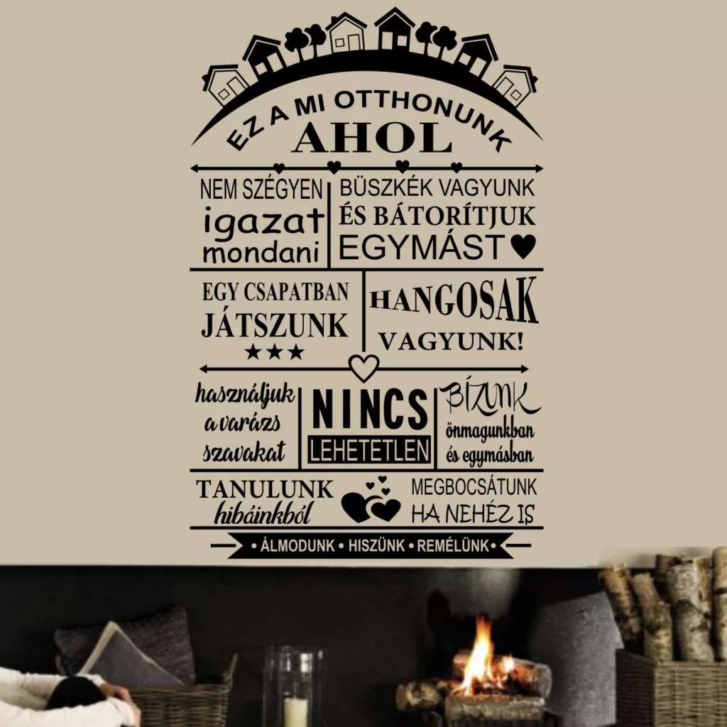 A(z) Ez a mi otthonunk – idézetes falmatrica egy különleges idézetes falmatrica, amely inspiráló gondolatokkal és pozitív energiával tölti meg otthonod falait. Ideális választás azoknak, akik szeretnének minden nap motivációt meríteni a környezetükből.