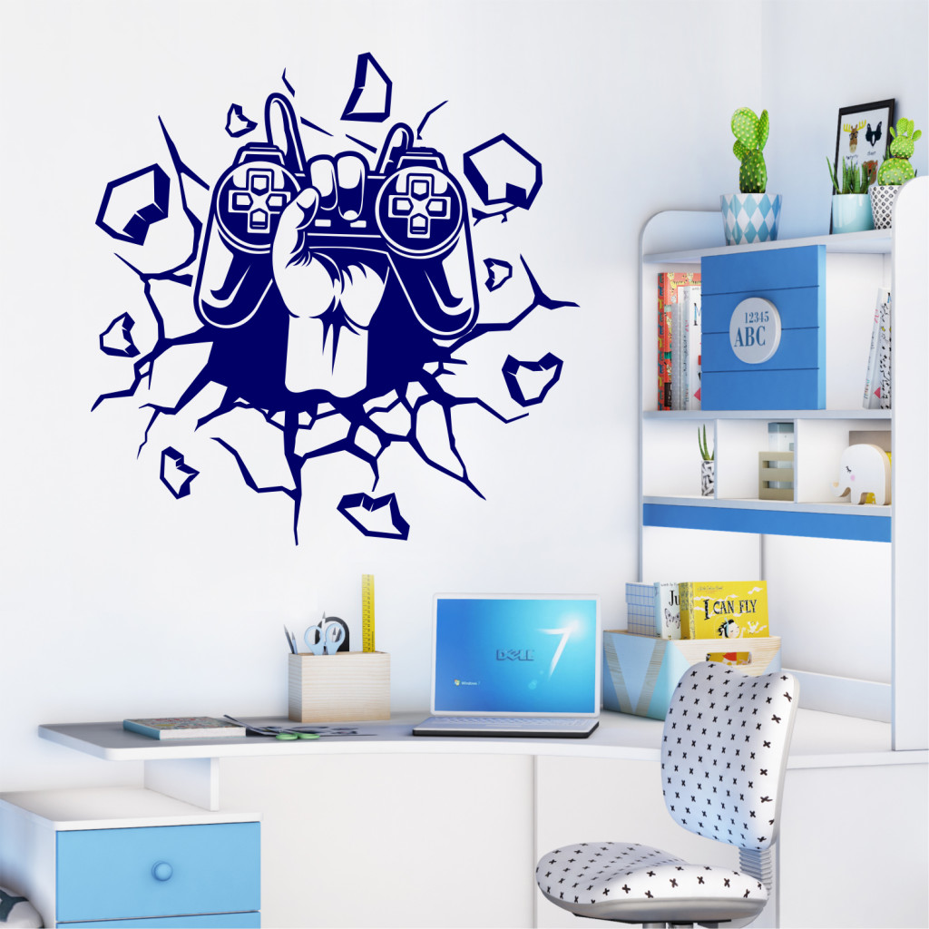 A(z) Gamer falmatrica 3D hatással – kontrolleres faltetoválás játékosoknak egy gamer falmatrica, amely karakteres, modern megjelenést ad a játékszobának vagy a dolgozósaroknak. Ideális választás konzolos és PC-s játékosoknak, stream háttérnek is kiváló.