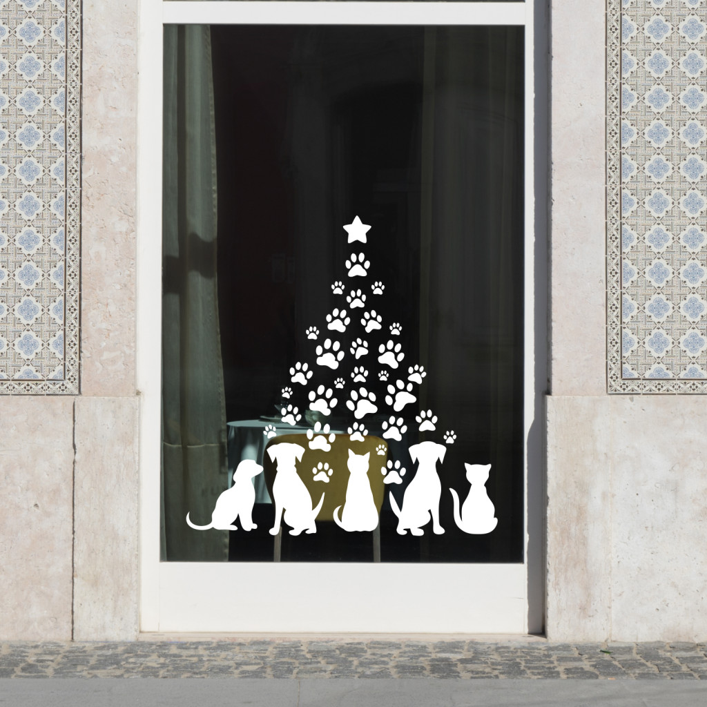 Dobd fel az ünnepi hangulatot ezzel a különleges ablakmatricával, amely kutyák és cicák sziluettjeit, valamint mancsokból kirakott karácsonyfát ábrázol. Tökéletes választás állatbarátoknak!