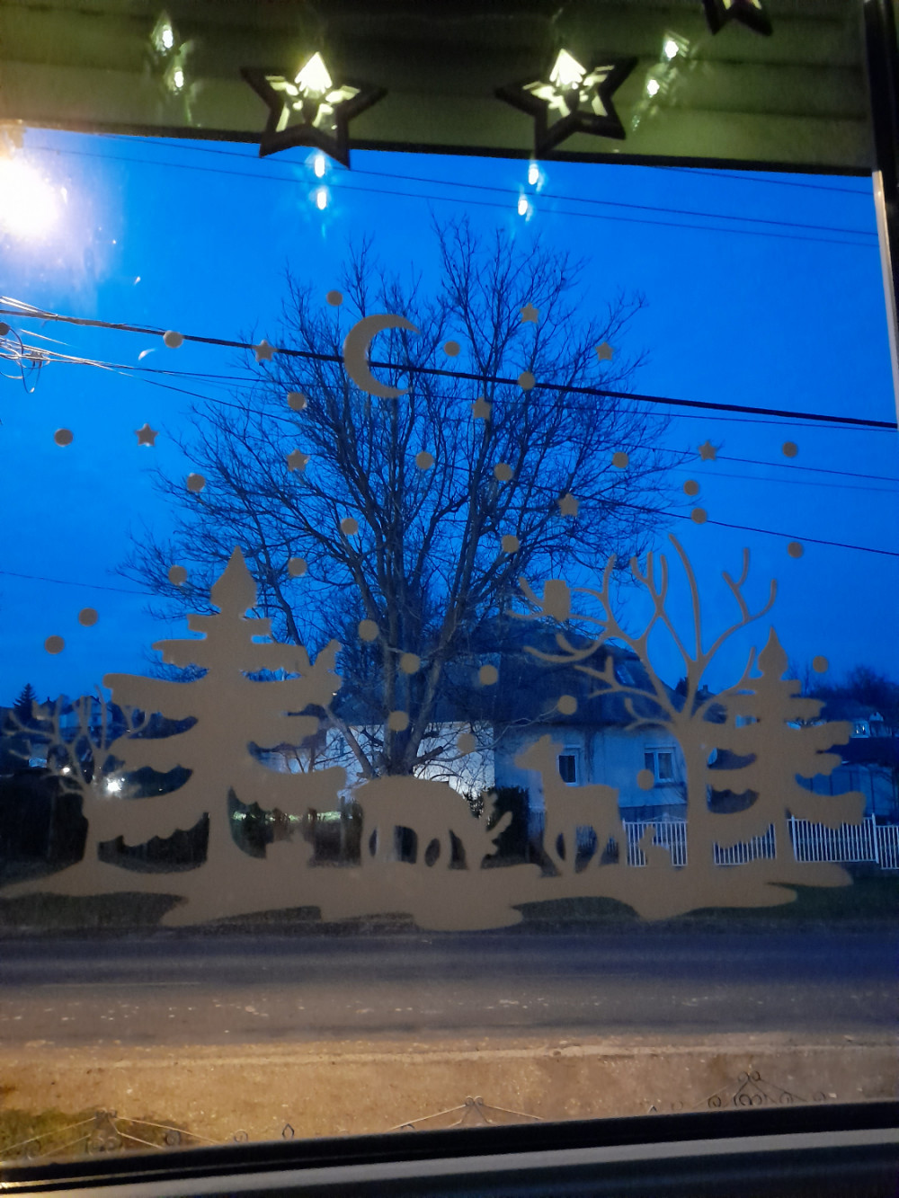 A matrica részletgazdag mintája csillagokkal és félholddal egészíti ki az erdei tájat. Látványos dekoráció, amely este, a fények mellett különösen hangulatos.