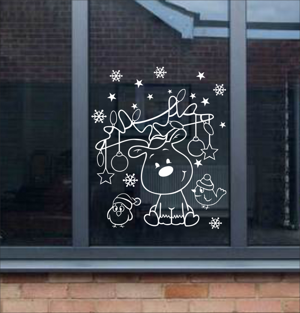 A barátságos rénszarvas és a körülötte lévő kismadarak varázslatos téli mesét idéznek, így tökéletes választás gyerekszobába, nappaliba vagy akár üzletek kirakataiba is.