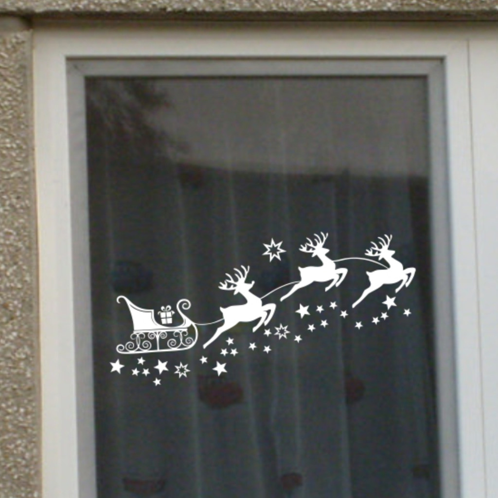 Varázsold ünnepivé otthonod ezzel a különleges karácsonyi matricával! A szarvasok által húzott szán és a csillagok azonnal a tél és a karácsony varázslatos hangulatát idézik.