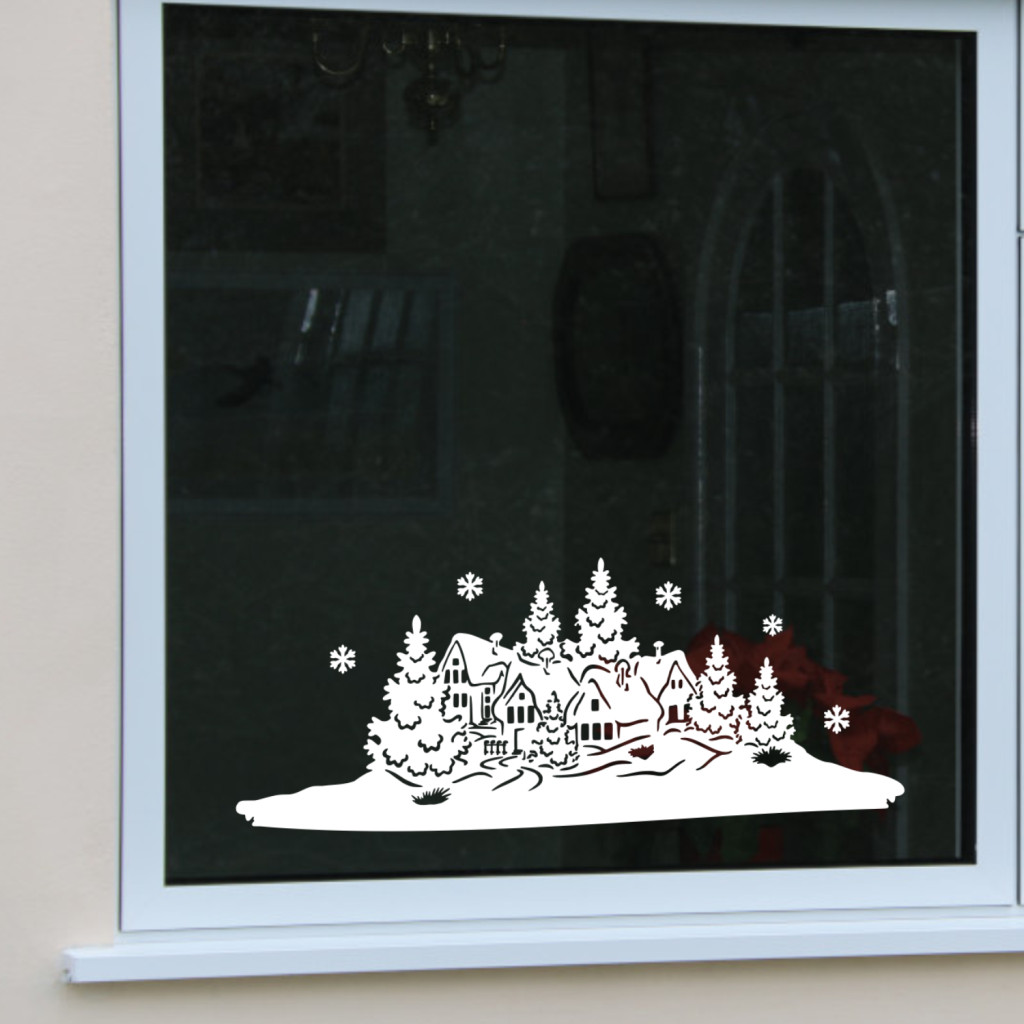 Karácsonyi ablakmatrica – hangulatos téli táj motívummal