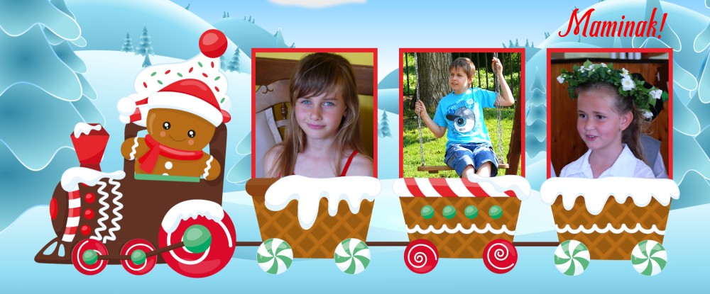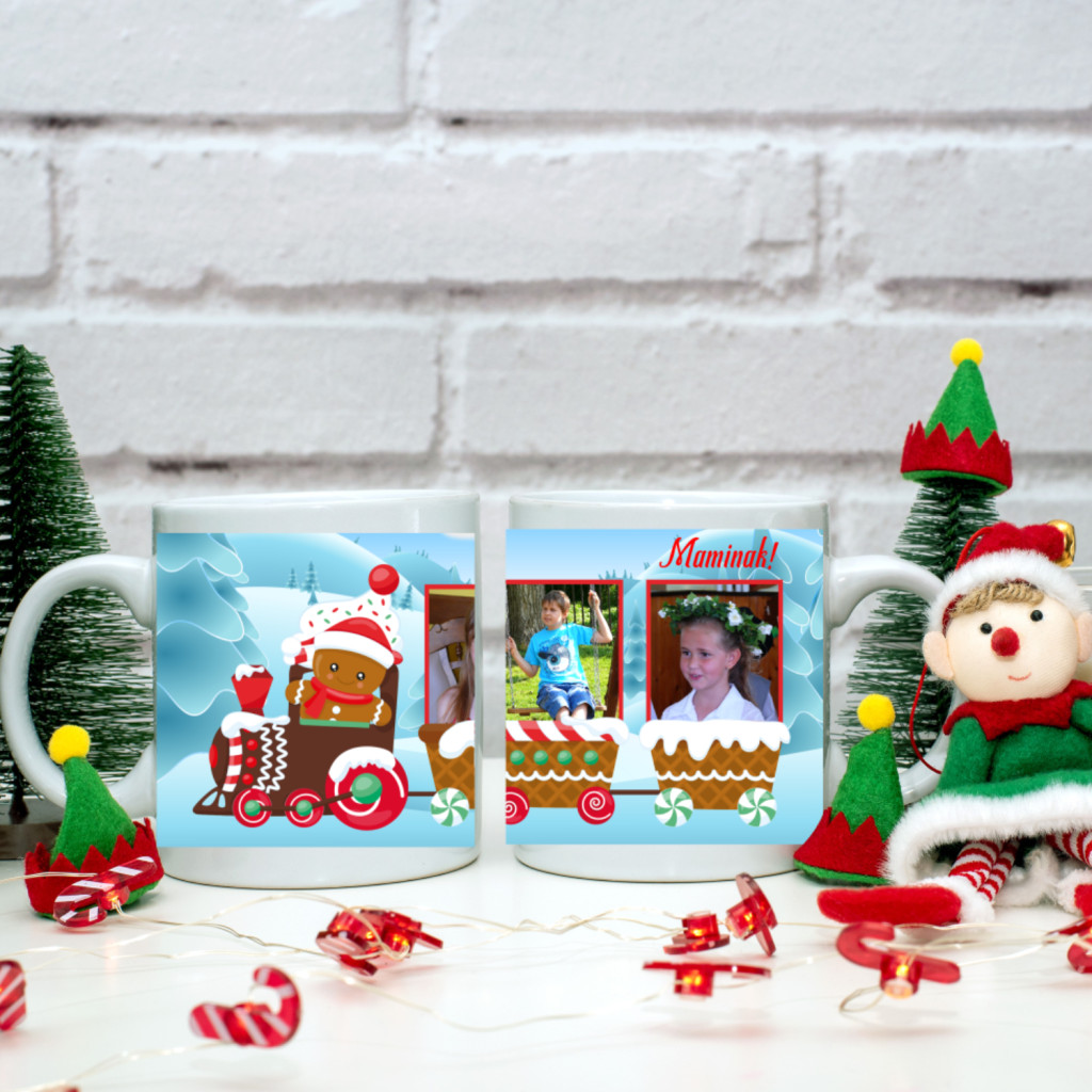 Karácsonyi vonatos bögre 3 db fényképpel, személyre szabható