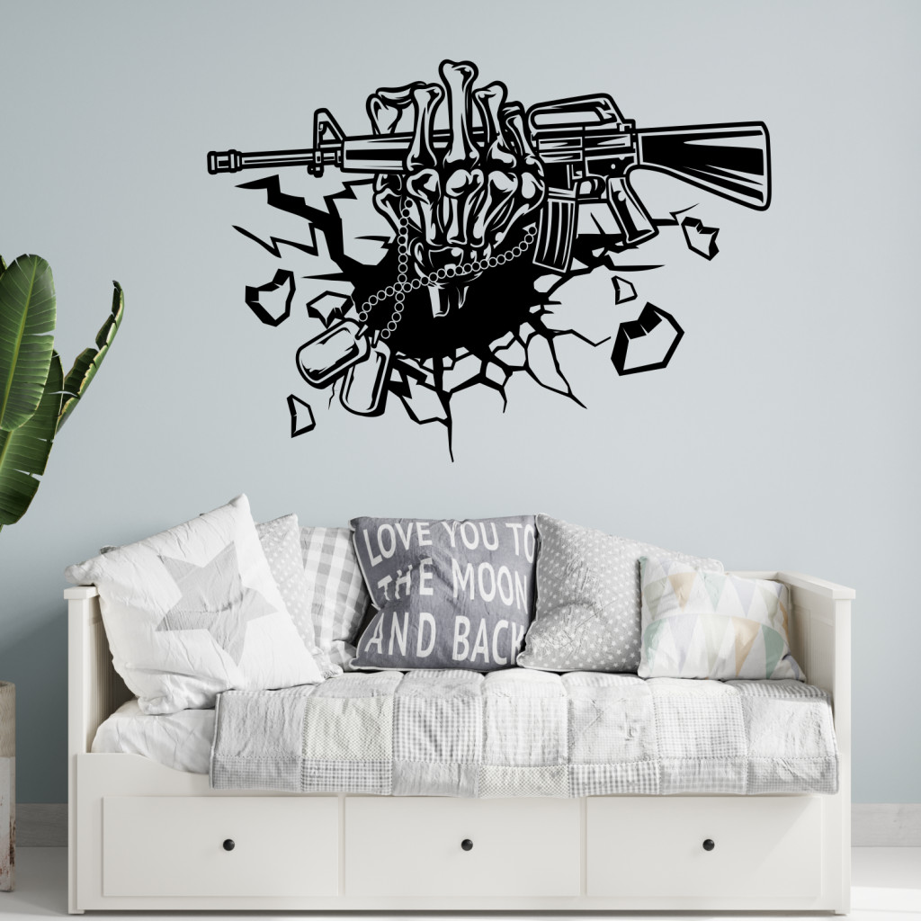 A(z) Áttörő katonai kéz gépfegyverrel – extrém falmatrica egy különleges 3D hatású falmatrica, amely optikai illúziójával azonnal magára vonzza a tekinteteket. Ideális választás azoknak, akik szeretnének modern és látványos dekorációt otthonukba.