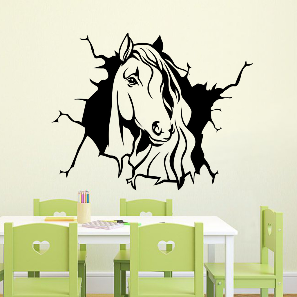 A(z) Lófejes falmatrica – falat áttörő ló 3D hatású faltetoválás egy különleges 3D hatású falmatrica, amely optikai illúziójával azonnal magára vonzza a tekinteteket. Ideális választás azoknak, akik szeretnének modern és látványos dekorációt otthonukba.