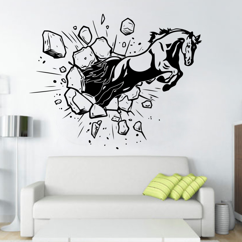 A(z) Lovas falmatrica 3D hatással – Ló áttöri a falat faltetoválás egy különleges 3D hatású falmatrica, amely optikai illúziójával azonnal magára vonzza a tekinteteket. Ideális választás azoknak, akik szeretnének modern és látványos dekorációt otthonukba.
