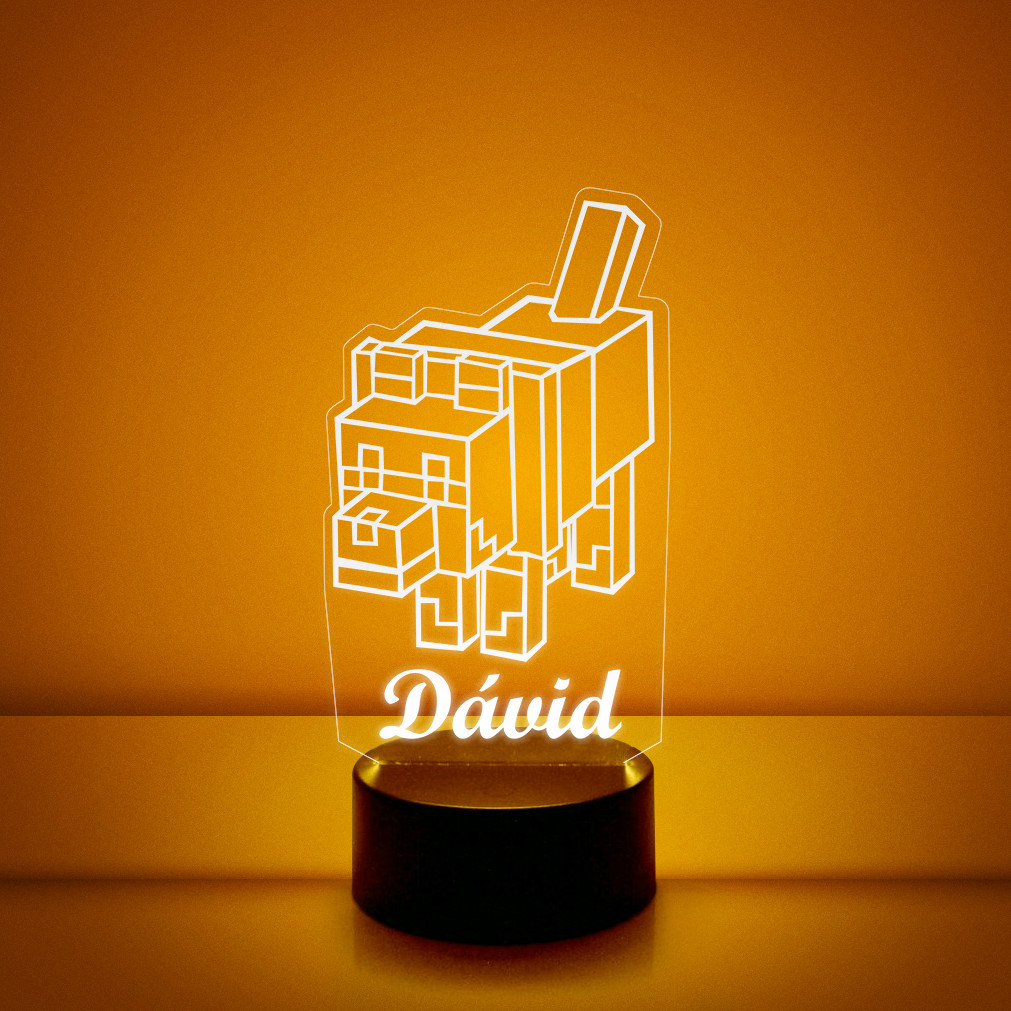 A(z) Minecraft stílusú 3D LED Lámpa kutyával – Egyedi gamer éjjeli fény névvel egy gyerekszobába tervezett 3D LED lámpa, amely mesés fényhatással és vidám mintákkal varázsolja különlegessé a szobát. Segít megnyugtatni a gyerekeket elalvás előtt, miközben stílusos dekorációként is szolgál.