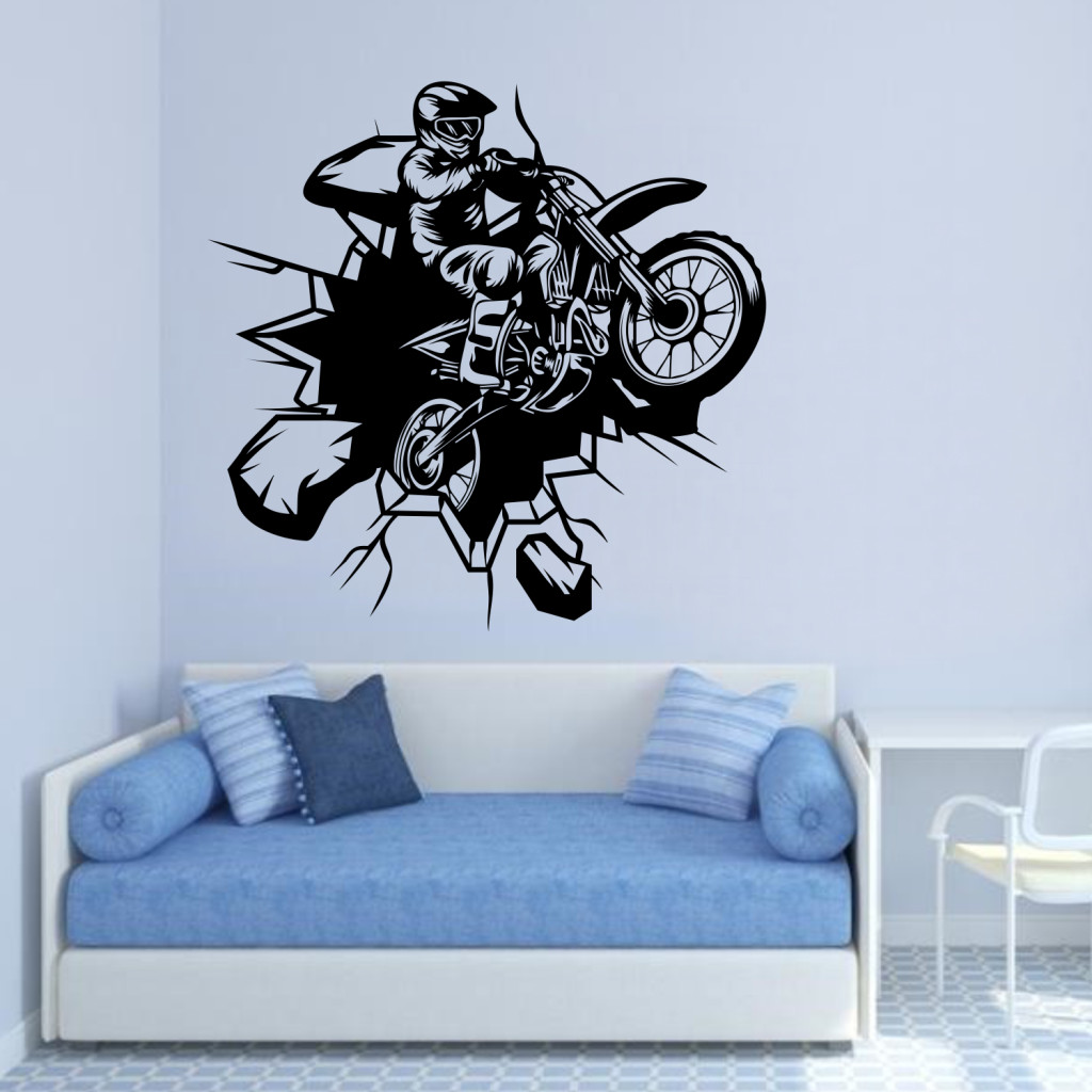 A(z) Motoros falmatrica 3D hatással – Motor áttöri a falat faltetoválás egy járműves falmatrica, amely tökéletes kiegészítője a gyerekszobának vagy bármely helyiségnek, ahol a közlekedés, autók, vonatok vagy repülők a főszereplők. Ideális választás járműrajongó gyerekeknek és felnőtteknek is.