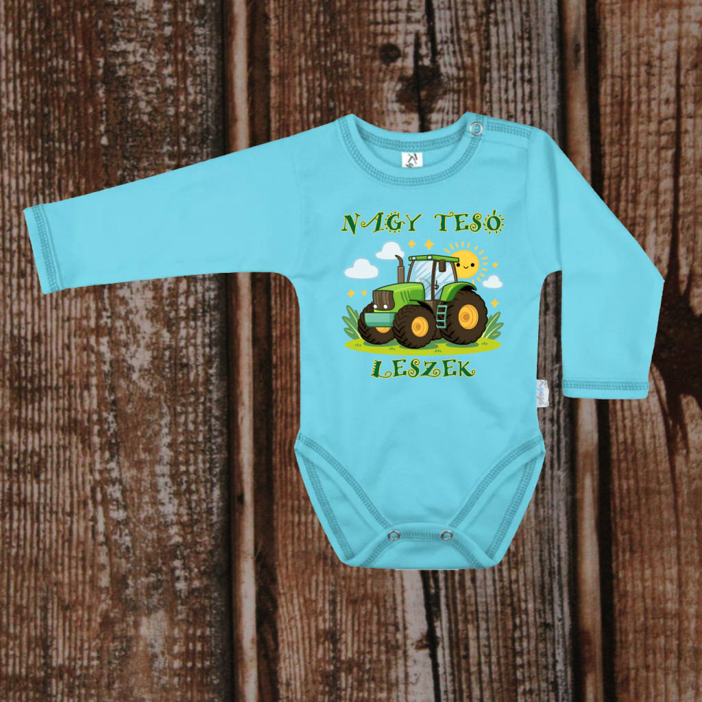 Traktoros „Nagy Tesó leszek” baba body, aranyos bejelentéshez és ajándékba.