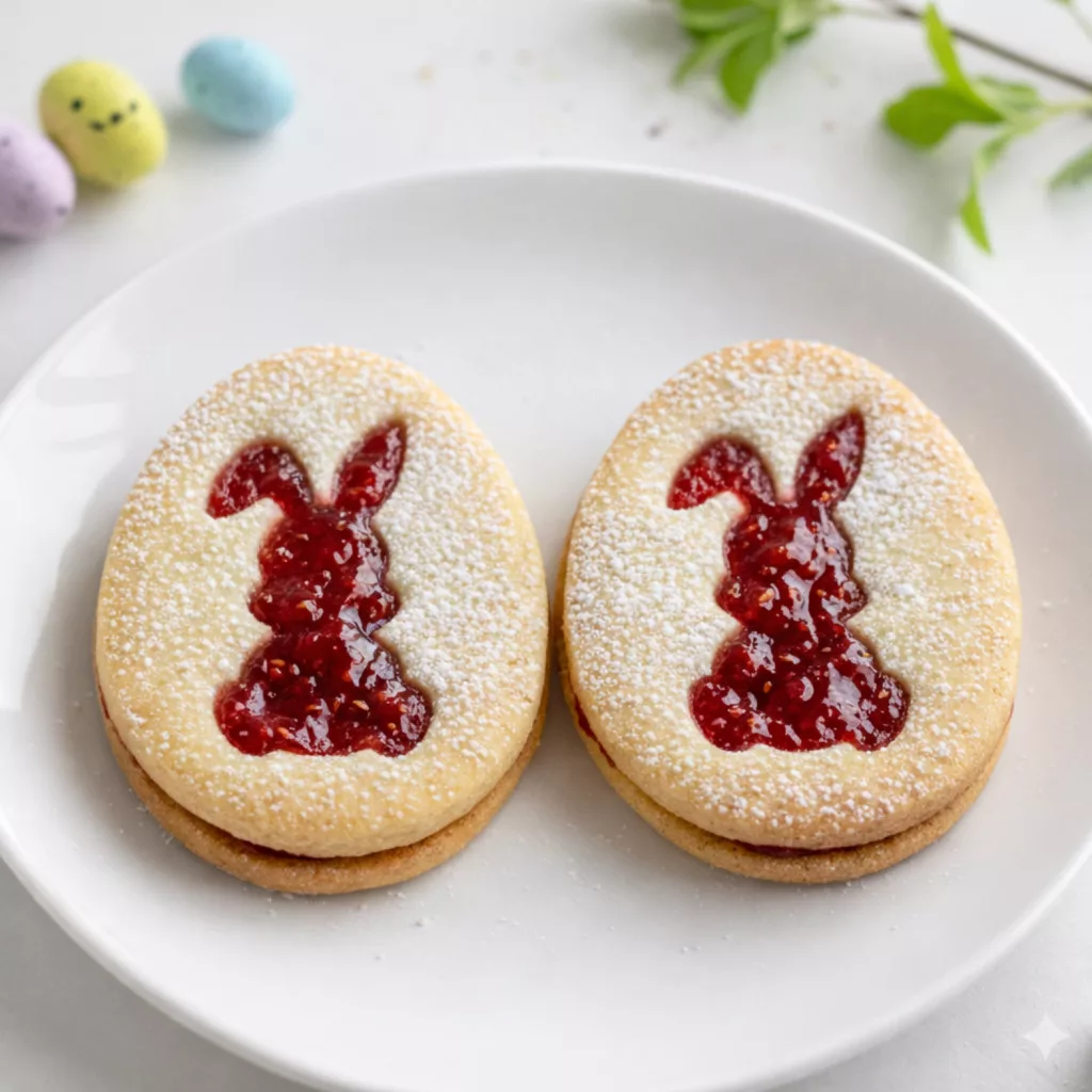Nincs húsvét hímes tojás és nyuszi nélkül – ez a süti pedig mindkettőt egyszerre hozza el! A középen lévő nyuszi kivágásba töltött élénkpiros lekvár gyönyörűen kontrasztol a porcukros tetővel, igazi ékszerdobozzá varázsolva a süteményt. Tökéletes vendégváró finomság, ami azonnal ünnepi hangulatot teremt.