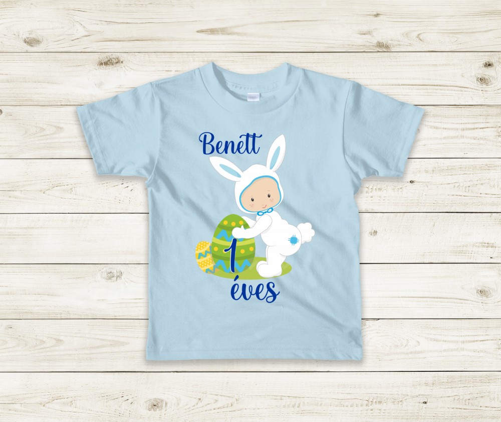 Nyuszis születésnapi baba póló – Egyedi kisfiú póló szülinapra