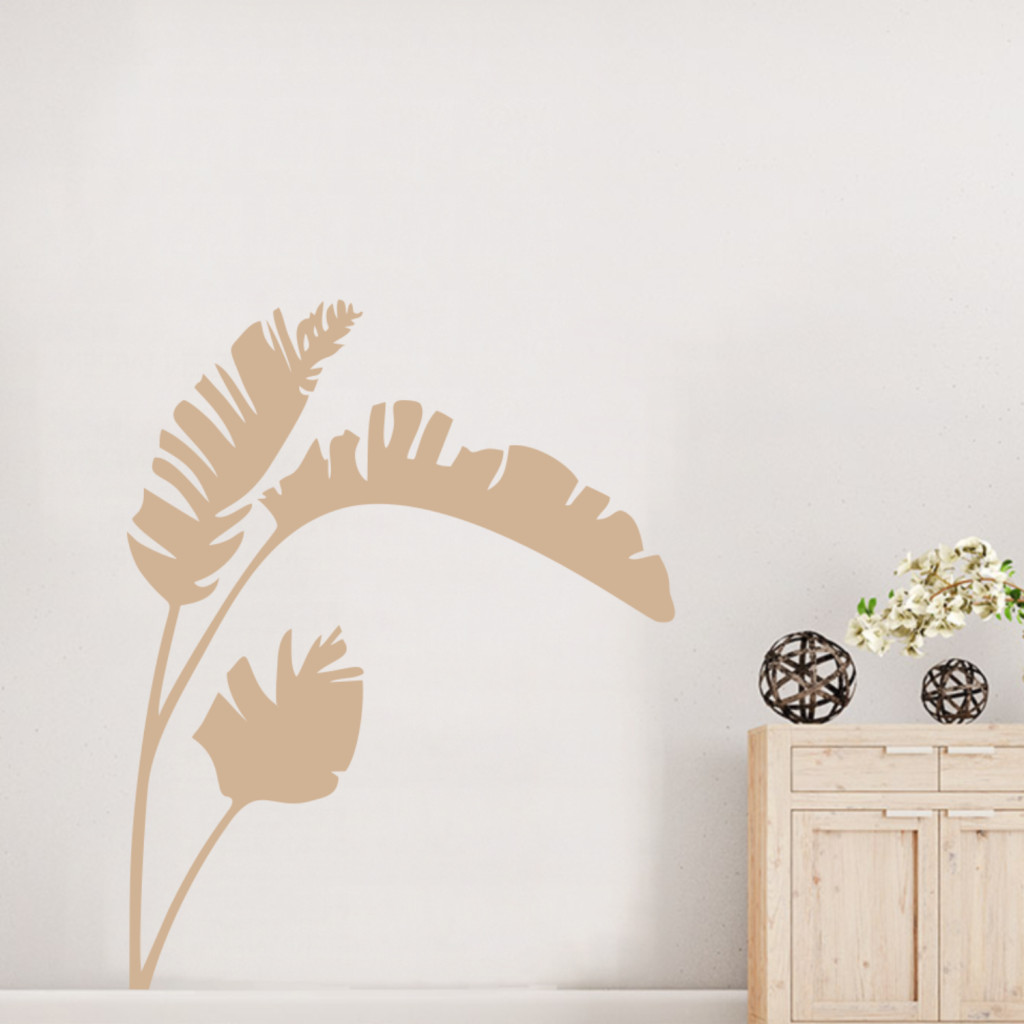 A pálmalevelek motívuma a természet és a szabadság szimbóluma. Ez a falmatrica egyedi megjelenést biztosít, miközben nyugodt, trópusi atmoszférát teremt a falakon.