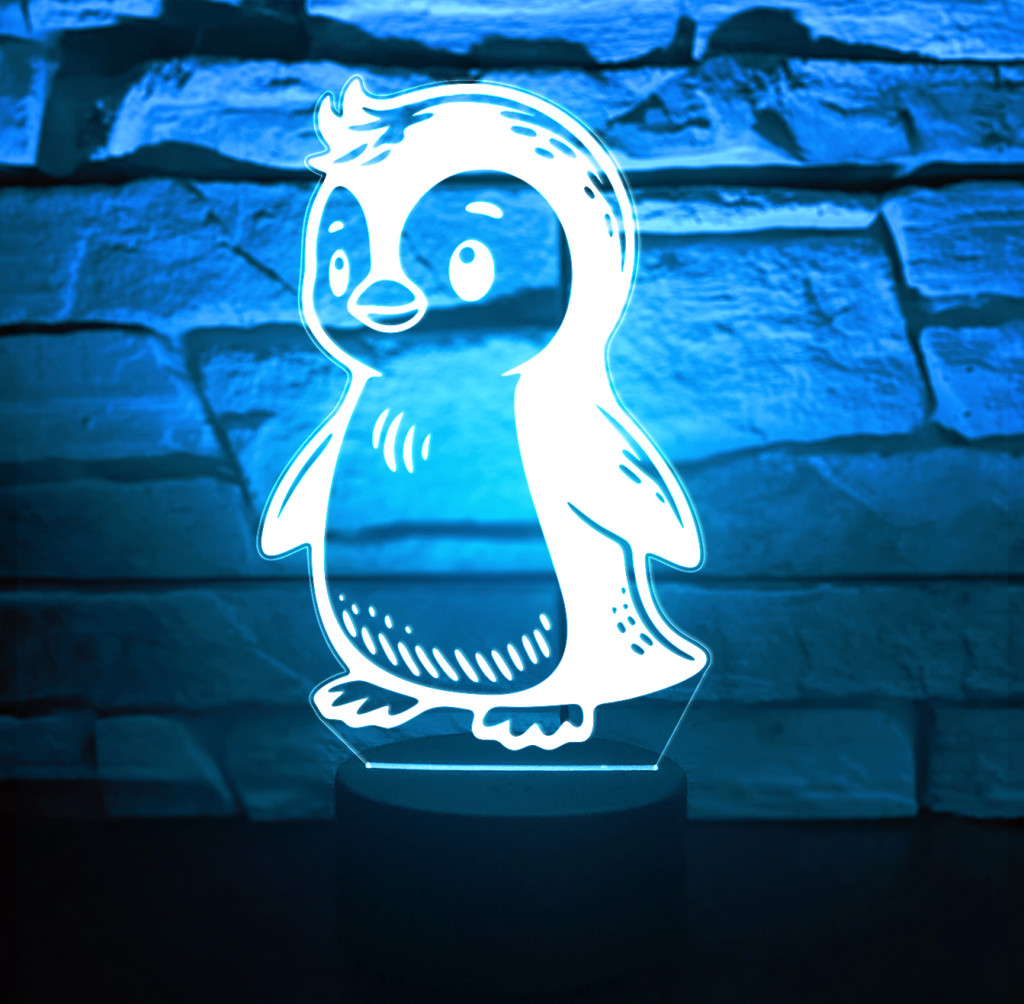 A(z) Pingvines 7 színű 3D LED lámpa egy különleges állatos 3D LED lámpa, amely vidám és hangulatos dekorációként varázsolja el a szobát. Az állatfigurák és a 7 színű LED világítás kombinációja egyedi 3D hatást nyújt.