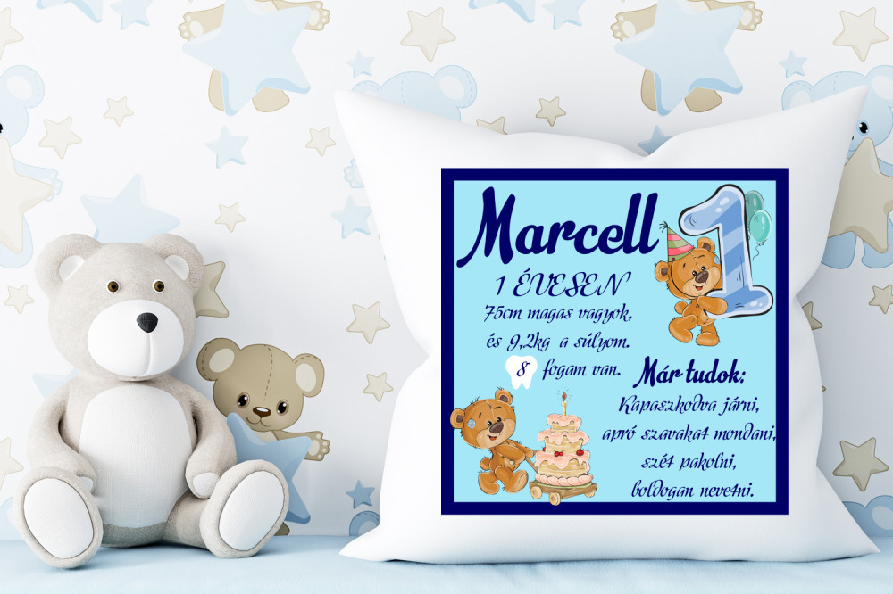 Boldog születésnapot fiús párna egy évesnek egyedi adatokkal