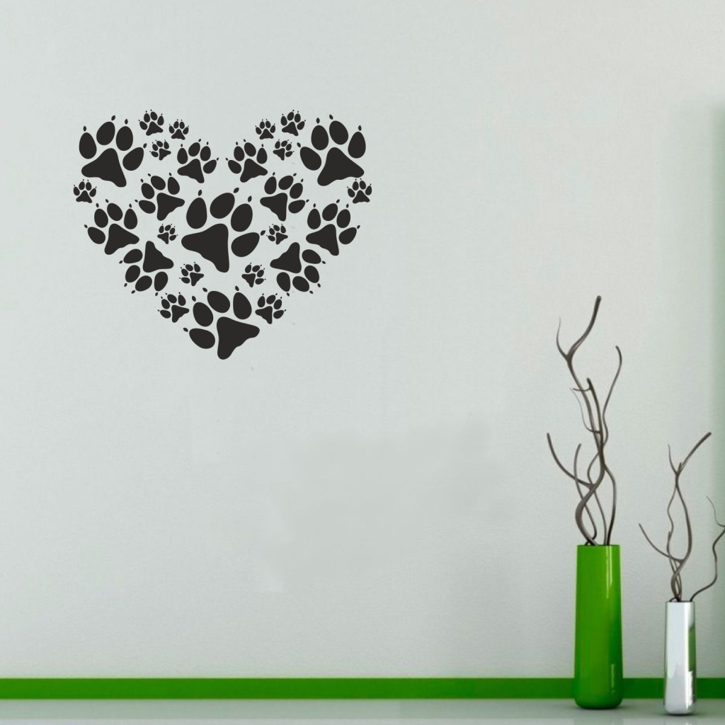 A(z) Kutya mancsok szívben falmatrica egy barátságos és vidám kutyás falmatrica, amely melegséget és játékosságot visz otthonod falaira.