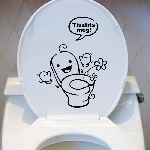 A(z) Wc dekoráció, tisztíts meg... matrica egy fürdőszoba/WC falmatrica, amely friss, rendezett megjelenést ad a vizes helyiségeknek.