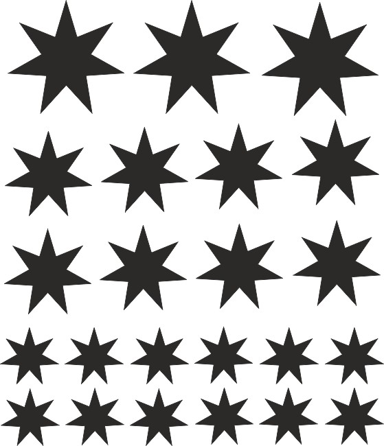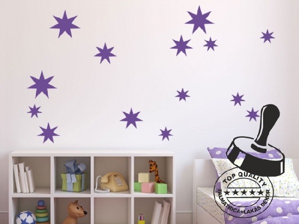 A(z) Csillag garnitúra 7-ágú 23 db-os gyerekszoba falmatrica egy különleges gyerekszoba falmatrica, amely vidám és barátságos hangulatot kölcsönöz a kicsik szobájának. Ideális választás szülőknek, akik szeretnék játékossá és egyedivé tenni gyermekük környezetét.