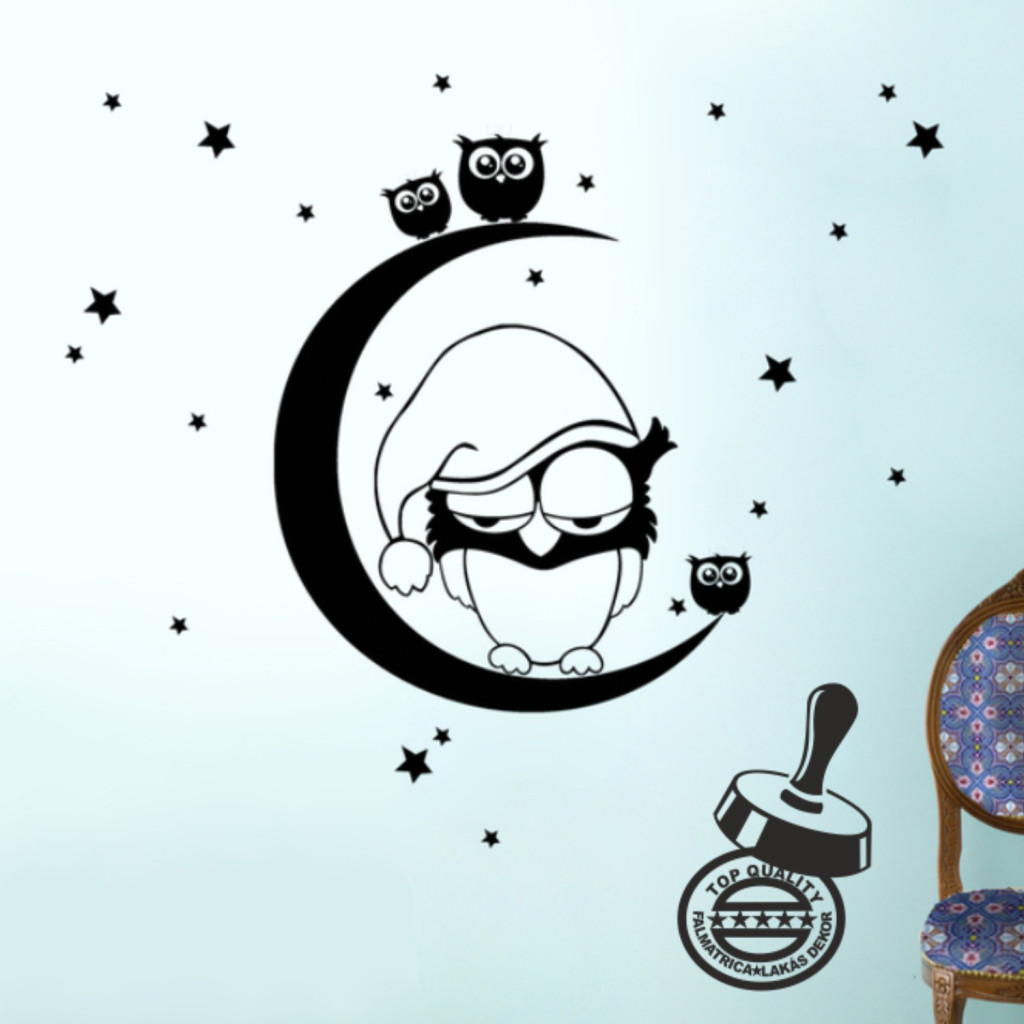 A(z) Bagoly és bagolykák holdon gyerekszoba falmatrica egy különleges gyerekszoba falmatrica, amely vidám és barátságos hangulatot kölcsönöz a kicsik szobájának. Ideális választás szülőknek, akik szeretnék játékossá és egyedivé tenni gyermekük környezetét.