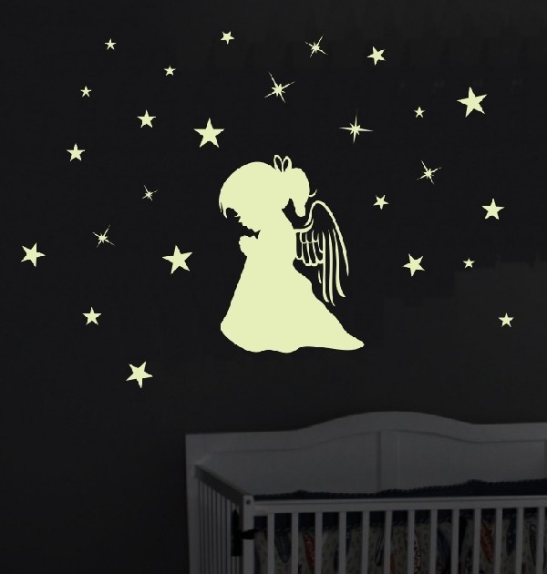 A(z) Angyalka "Sötétben világít" falmatrica egy különleges, sötétben világító falmatrica, amely nappal stílusos dekoráció, este pedig fénylő hangulatot varázsol a szobába. Tökéletes gyerekszobába, hálószobába vagy akár nappaliba.