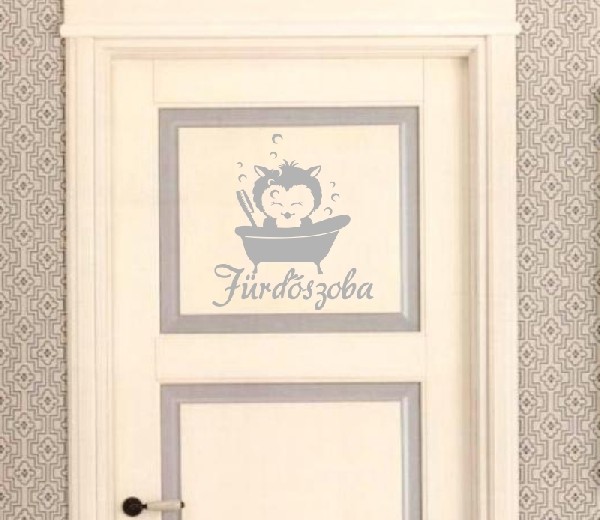 A(z) Fürdő 3 cicás ajtó matrica egy fürdőszoba/WC falmatrica, amely friss, rendezett megjelenést ad a vizes helyiségeknek.