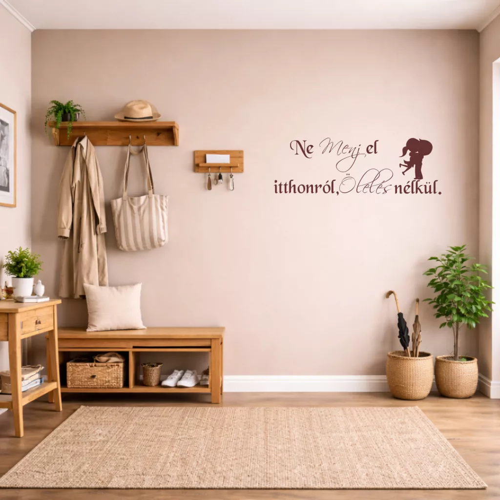 A(z) Ne menj el itthonról,ölelés nélkül,..Idézet falmatrica egy különleges idézetes falmatrica, amely inspiráló gondolatokkal és pozitív energiával tölti meg otthonod falait. Ideális választás azoknak, akik szeretnének minden nap motivációt meríteni a környezetükből.