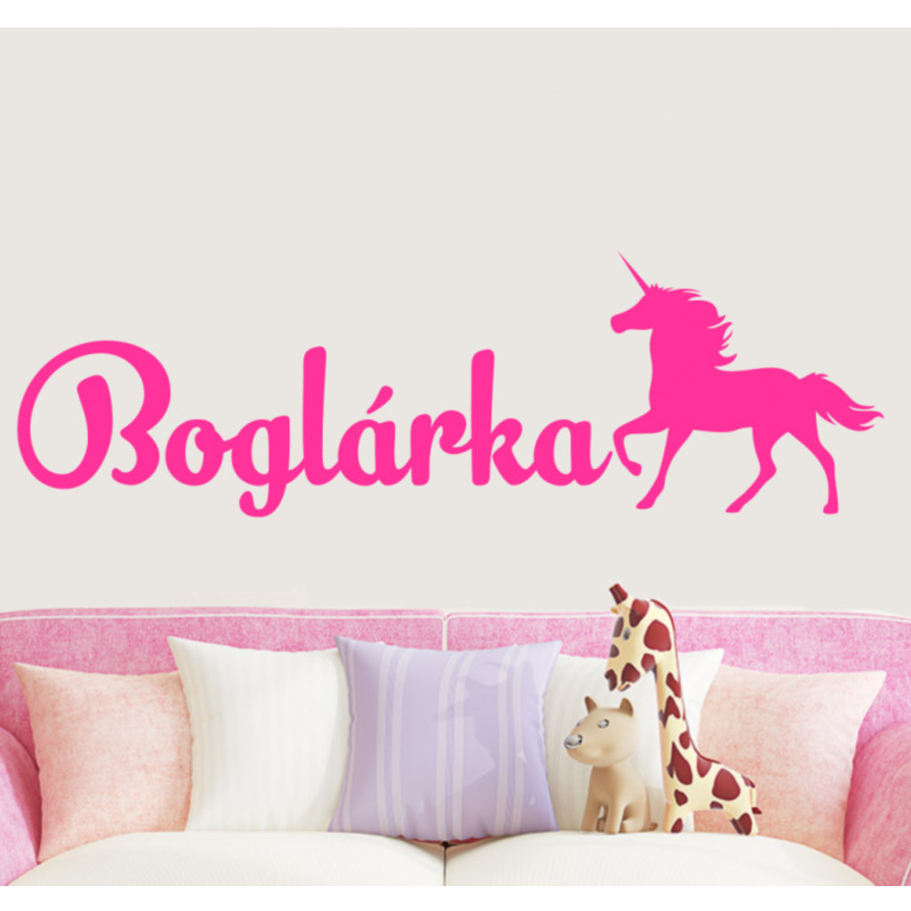 A(z) Unicornis neves falmatrica egy névre szóló felirat falmatrica, amellyel a gyerekek szobája vagy bármely helyiség igazán személyes hangulatot kap. Ideális választás, ha a gyermek nevét különböző stílusokban és mintákkal szeretnéd megjeleníteni.