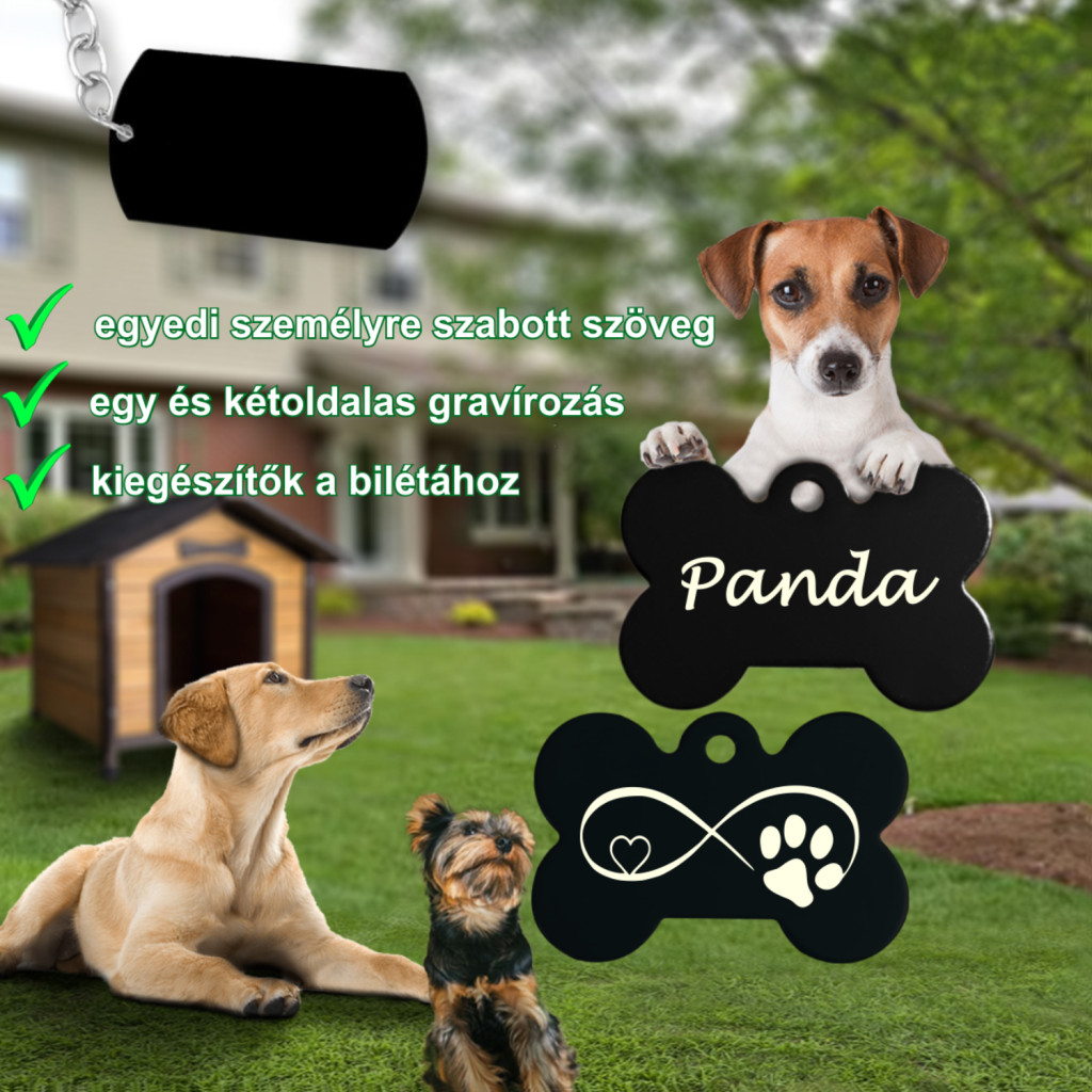 Ez a gyönyörű, lézergravírozással készül csont alakú kutyabiléta tökéletes választás kedvencetek azonosítására és biztonságára. Személyre szabható kivitelének köszönhetően egyedi és megismételhetetlen ajándékot kapsz, amely hosszú éveken át megőrzi szépségét.