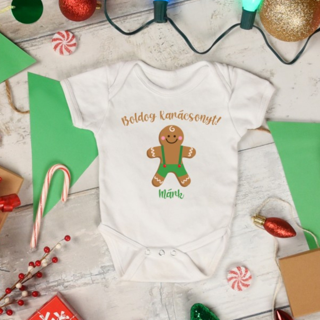 Boldog karácsonyt mézeskalács figurával baba body