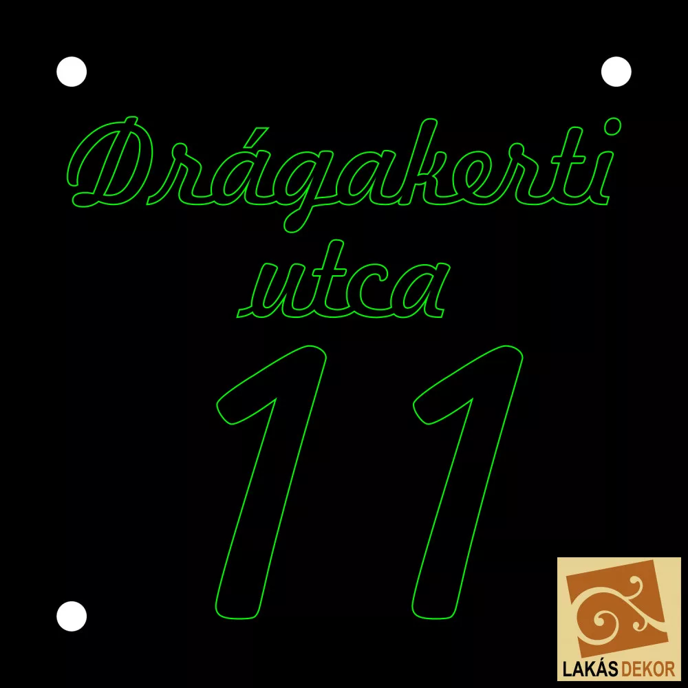 Utca név, házszám LED tábla kontúrgravírozott
