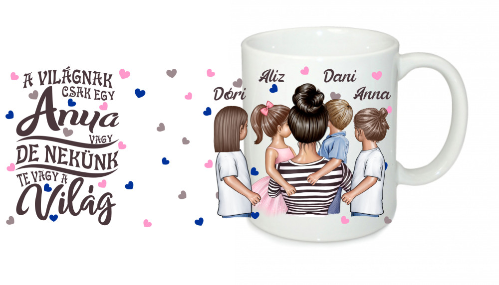 A világnak egy anya vagy egyedi bögre Három lány 1 fiú bögre
