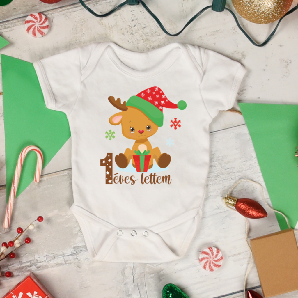 Szülinapi szarvasos baba body