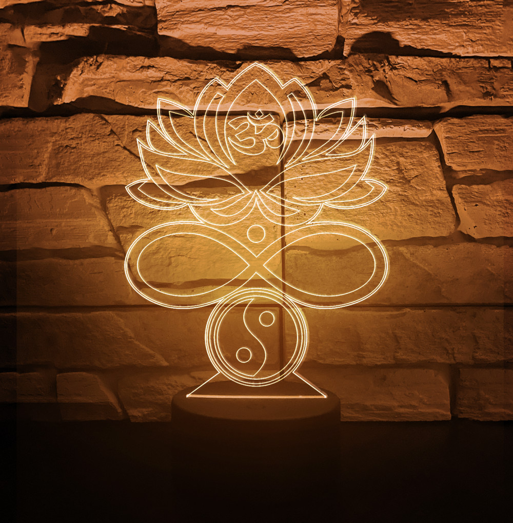 A(z) Lótusz 3D hatású led lámpa Kontúrgravírozott egy szimbólumok ihlette 3D LED lámpa, amely spirituális, vallási vagy motívumos mintáival varázsol különleges hangulatot. Stílusos dekoráció és hangulatos fényforrás, amely személyre szabható.