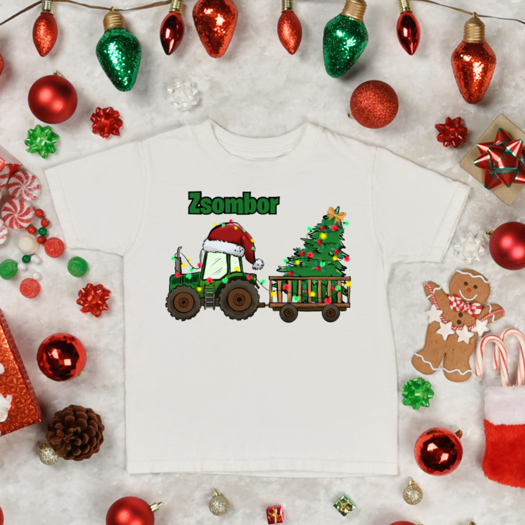 Traktoros karácsonyi gyerek póló – ünnepi hangulat kis traktorrajongóknak