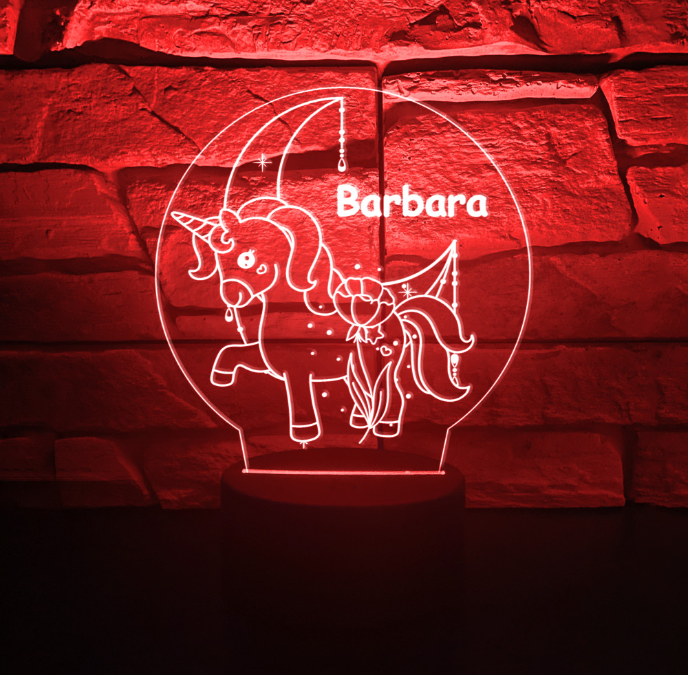 A(z) Unikornis éjjeli LED lámpa – egyedi névvel egy személyre szabható 3D LED lámpa, amely névvel, felirattal vagy akár dátummal ellátva készülhet. Tökéletes dekoráció és ajándék, amely igazán egyedi és emlékezetes.
